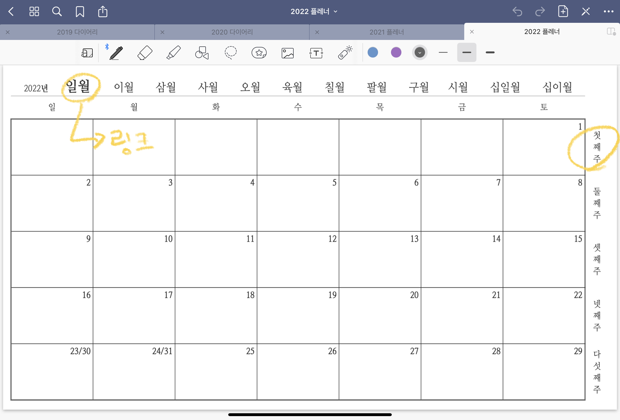 2022년 다이어리 캘린더 공유