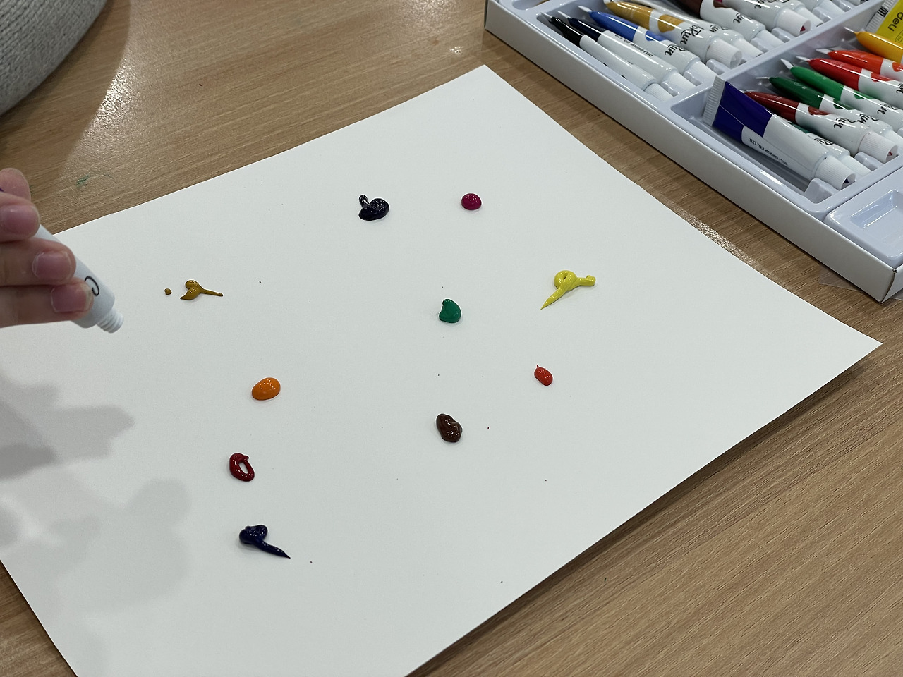 - 색이 섞일 수 있도록 서로 가까운 위치에 물감을 짜는 것이 좋아요.