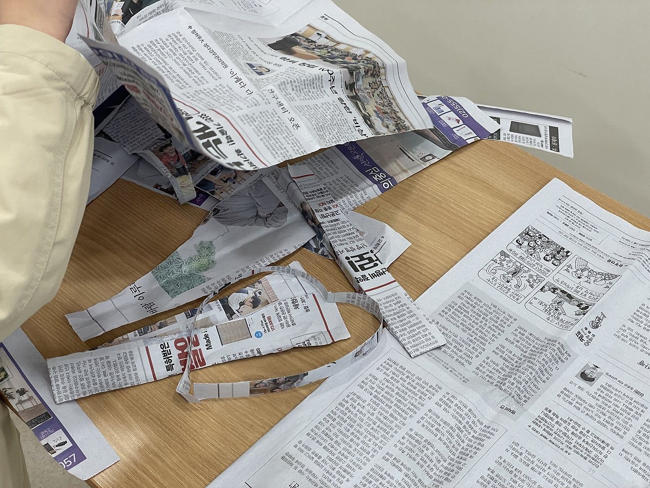 - 신문지를 함께 모아 박스에 넣으며 정리 습관 형성