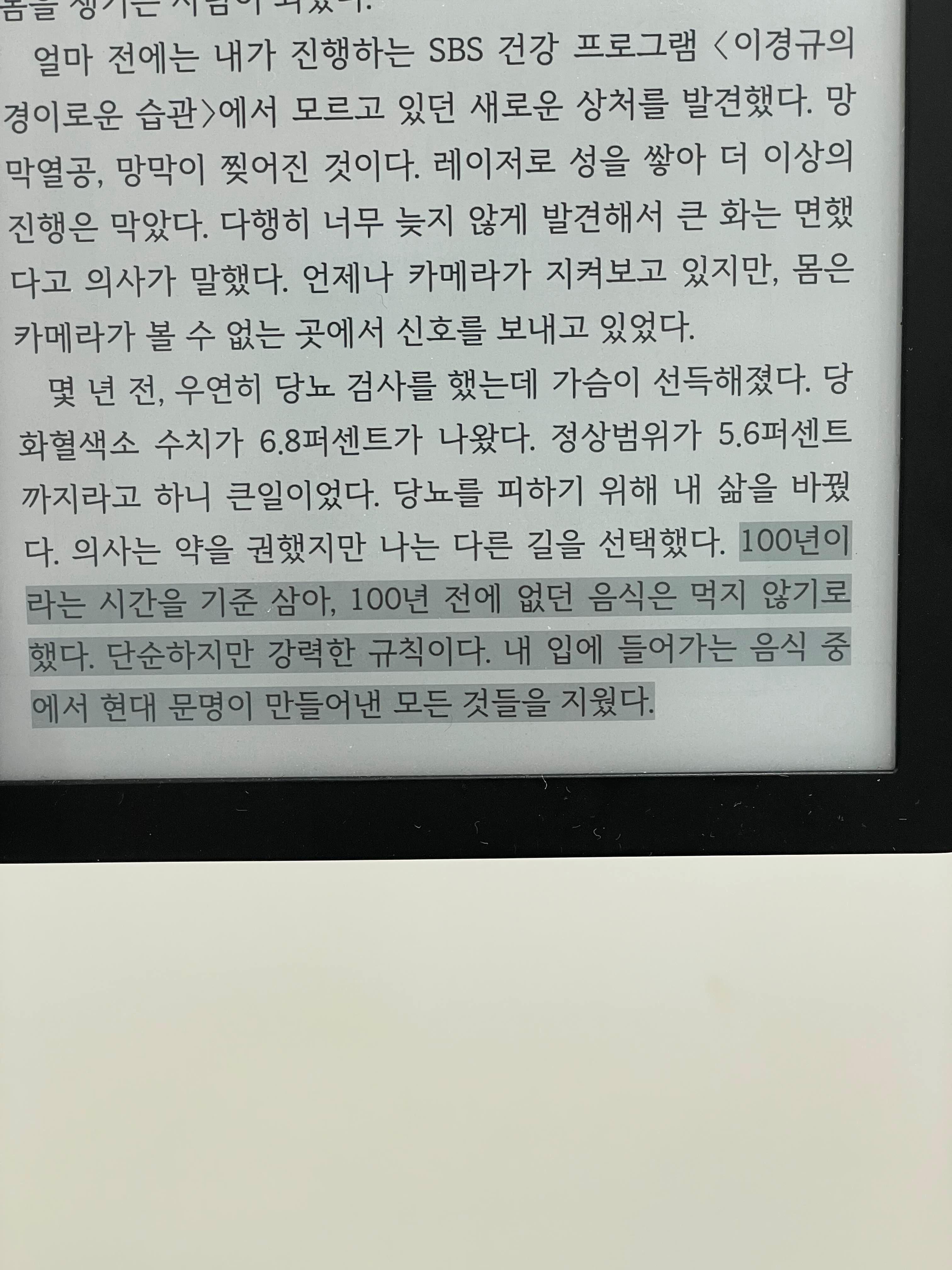 100년이라는 시간을 기준 삼아, 100년 전에 없던 음식은 먹지 않기로 했다. 단순하지만 강력한 규칙이다. 내 입에 들어가는 음식 중에서 현대 문명이 만들어낸 모든 것들을 지웠다.