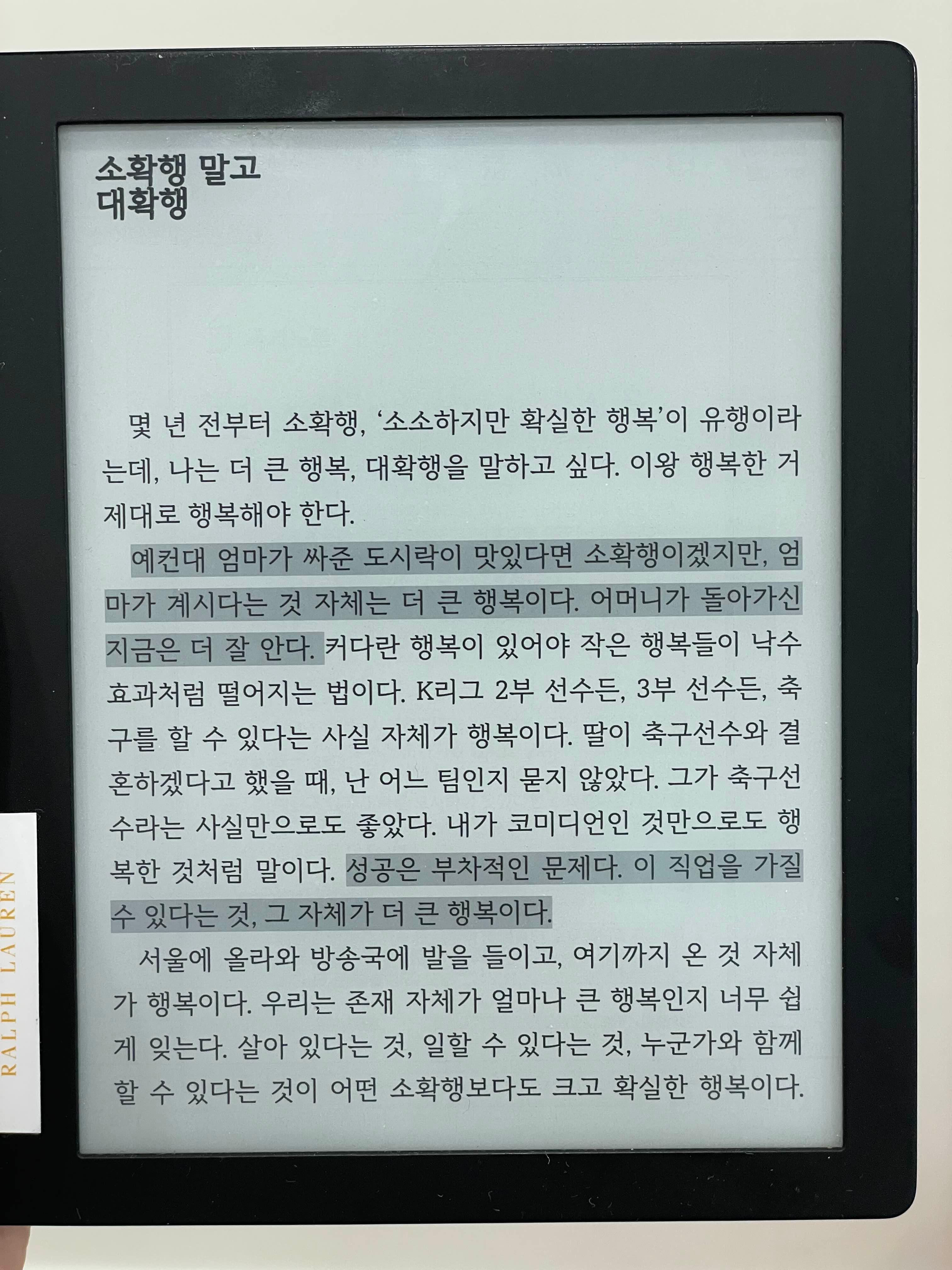 소확행 쫓다가 대확행 잊어버릴라. 정신차리게 해준 한마디였다.