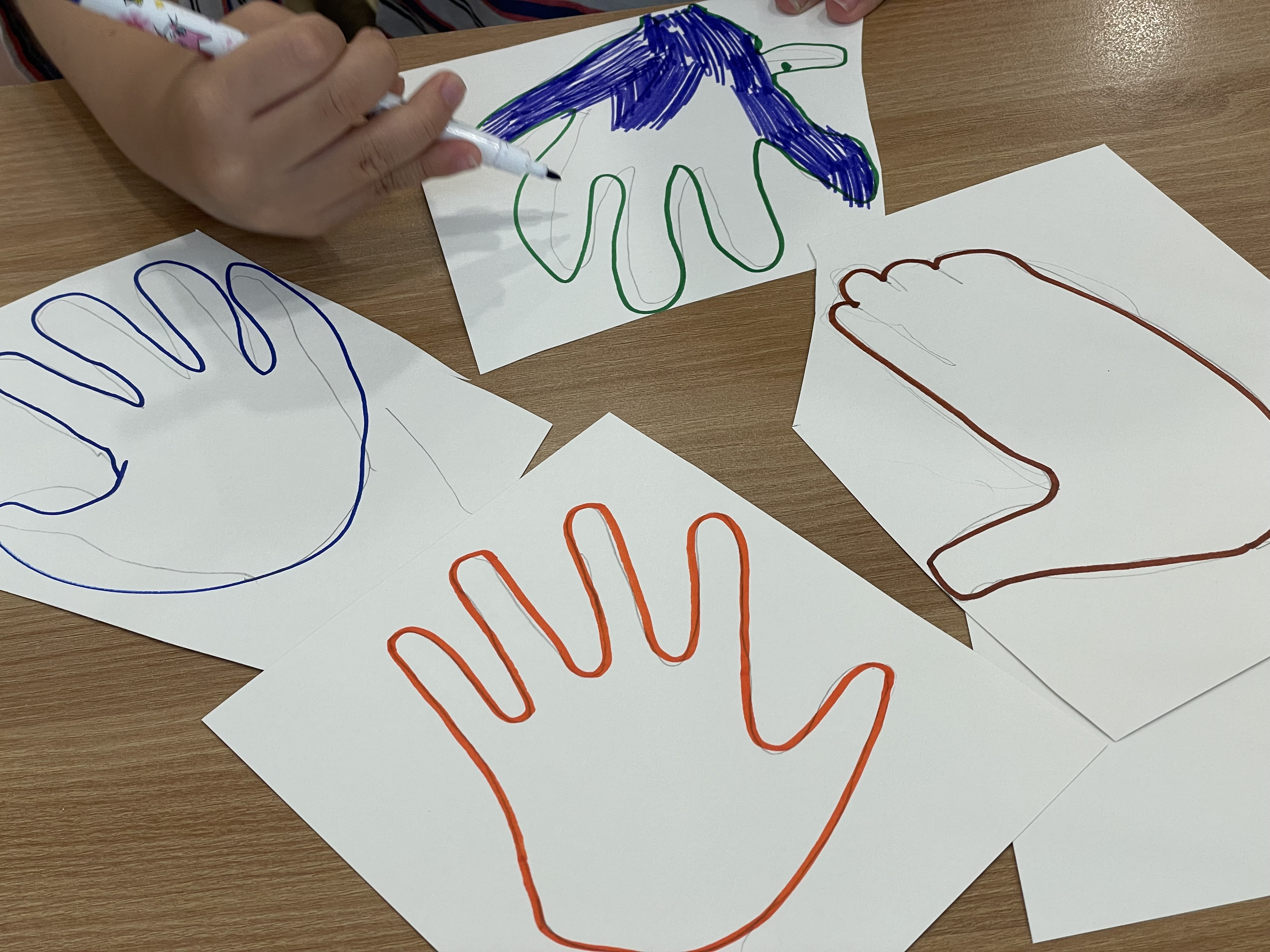 이번 활동은 도화지에 자신의 손을 그리고, 오려서 꾸민 뒤